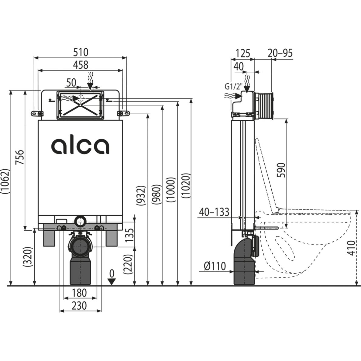 - Tvirtinimo aukštis 1062 mm.