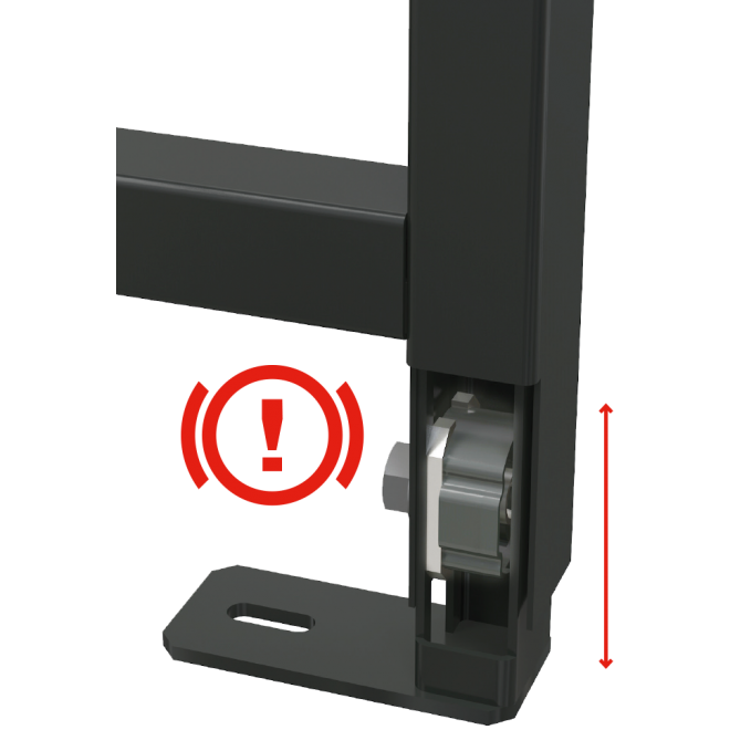 - Reguliuojamos tvirtinimo kojelės ir spyruoklinė fiksavimo sistema, kurių diapazonas yra 0–200 mm