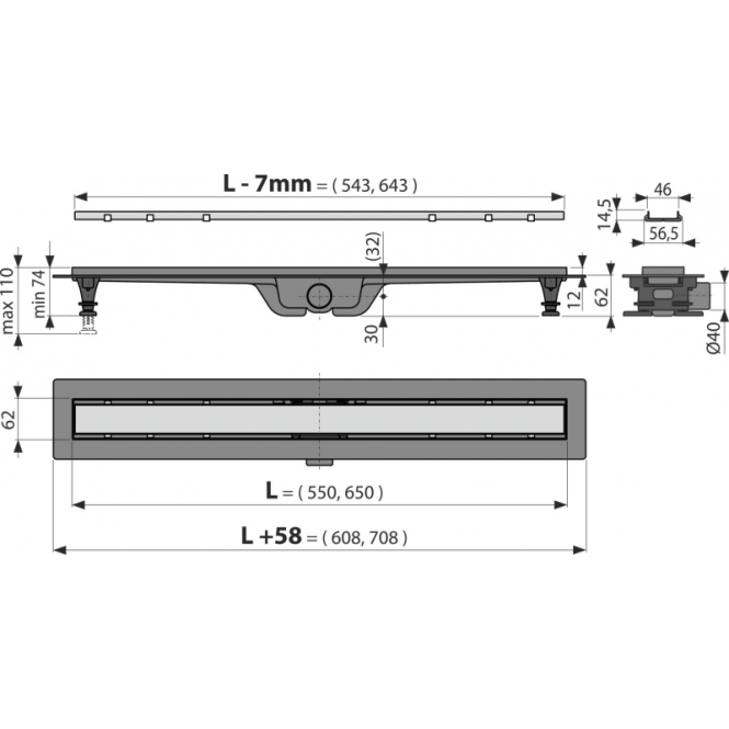Alcadrain dušo latakas su grotelėmis 750mm APZ19-750M