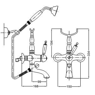 Bugnatese aukštas maišytuvas voniai su rankiniu dušu Oxford 6302-19640
