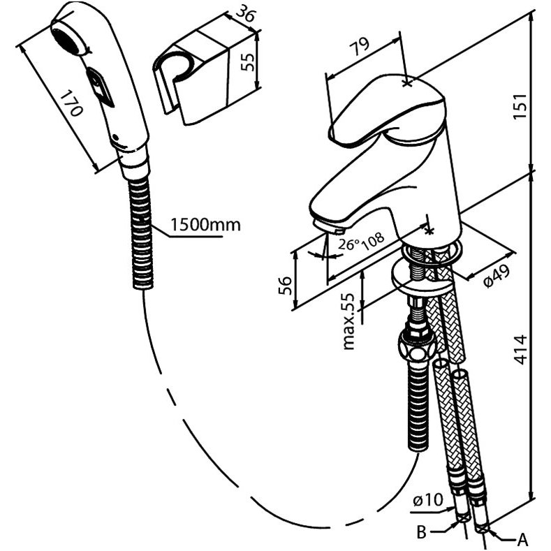 Damixa maišytuvas praustuvui su dušeliu Space 10030