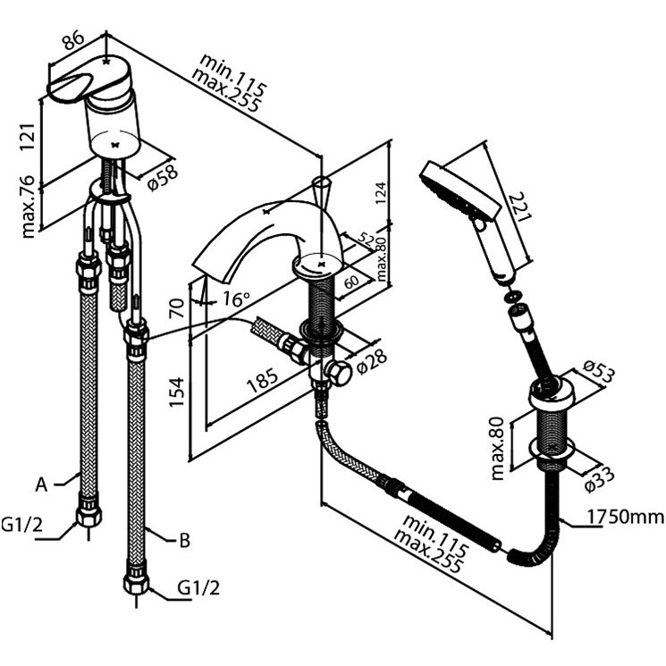 Kodas: Damixa 6001300Tipas3 dalių maišytuvas voniai