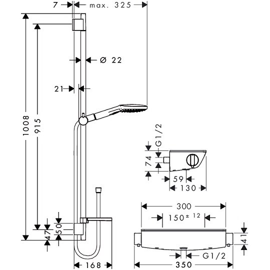 Hansgrohe dušo komplektas su termostatiniu maišytuvu Ecostat Select Combi 90 cm & Raindance Select E 120 3jet