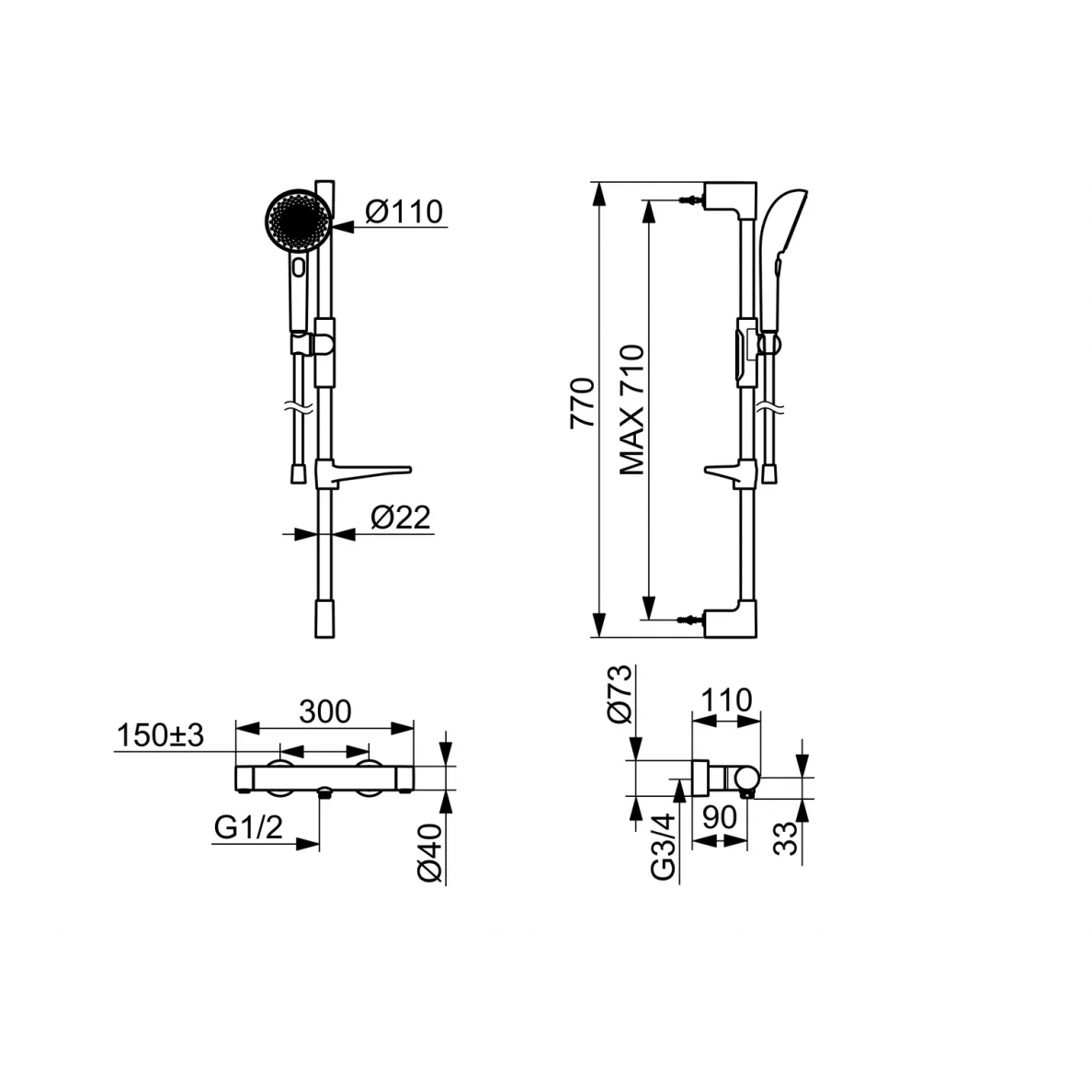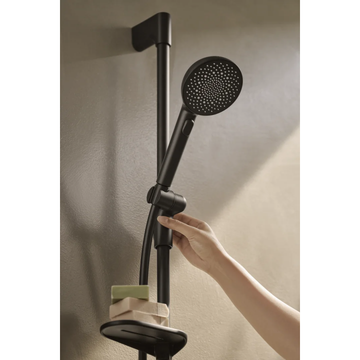 Nesenstantis senovinio rankų darbo tilto siluetas, puikiai atsispindintis ramiuose vandenyse, virsta plonu ir elegantišku cilindriniu termostatu. Kruopščiai suprojektuotos rankenos sklandžiai užbaigia formą, nesumažindamos funkcionalumo ir iš visų pusių spinduliuodamos eleganciją. Tobulai suprojektuotos rankenos užbaigia formą neprarasdamos funkcionalumo. Paprastais, vos keliais judesiais galima lengvai reguliuoti srautą ir temperatūrą, kad būtų galima pasiekti tobulą dušo pojūtį. Aurelia dizaino įkvėpimo semiasi iš išskirtinių laukinės gamtos elementų. Nuo grakštaus lotoso žiedo, paversto į sroves, skirto grynam malonumui, iki paprasčiausio mažyčio vandens lašelio. 110 mm - 3 srovių rankinis dušas. Lengvai paspaudžiamas perjungiklis, kad būtų galima lengvai pasirinkti purškimo srovę. Lengvai reguliuojamas dušo laikiklis.