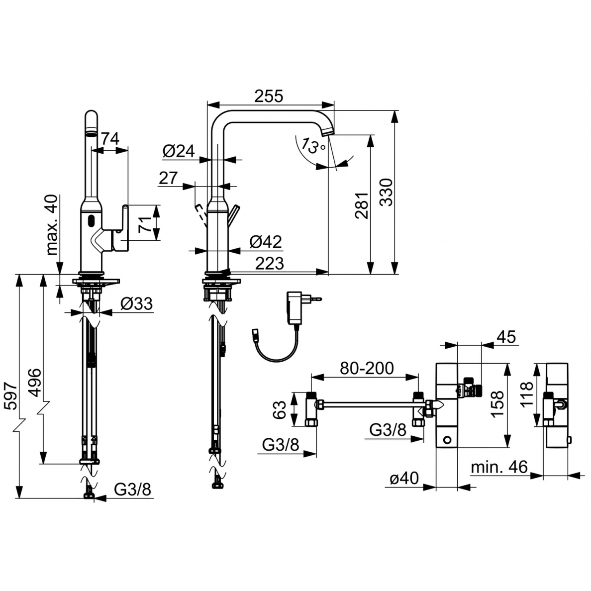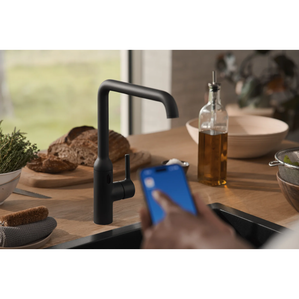 Virtuvinis termostatinis maišytuvas, maitinamas per kištukinį maitinimo šaltinį 230/9 V.