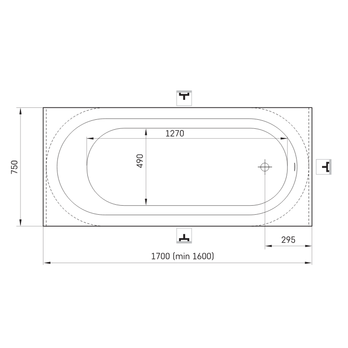 PAA akmens masės vonia 1700x750 VARIO L