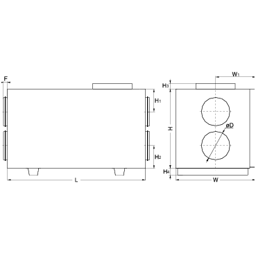 • Integruotas elektrinis šildytuvas ir papildomai komplektuojamas kanalinis vandeninis/freoninis šildytuvas/aušintuvas.