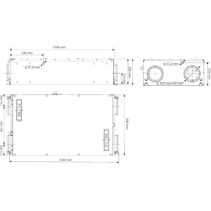 •Išorinės korpuso sienelės dažytos baltai (RAL 9016) milteliniu būdu; Korozijos klasė – C3