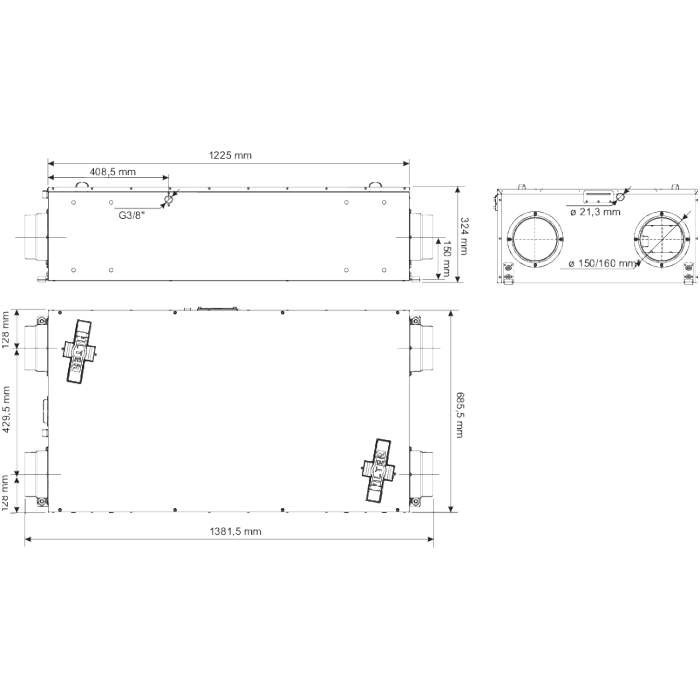 •Specifinė įrenginio galia SPI (efektyvumas) – 0,29W m³/h•Minimalus energijos suvartojimas (SFP) <0,8
