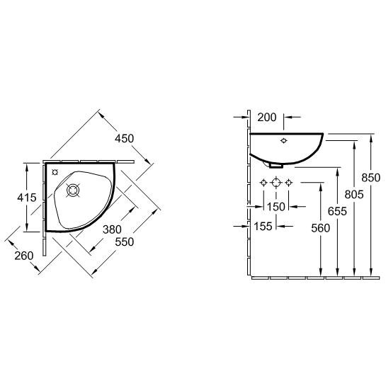 Villeroy&Boch kampinis praustuvas 415x415 O.Novo 73274001
