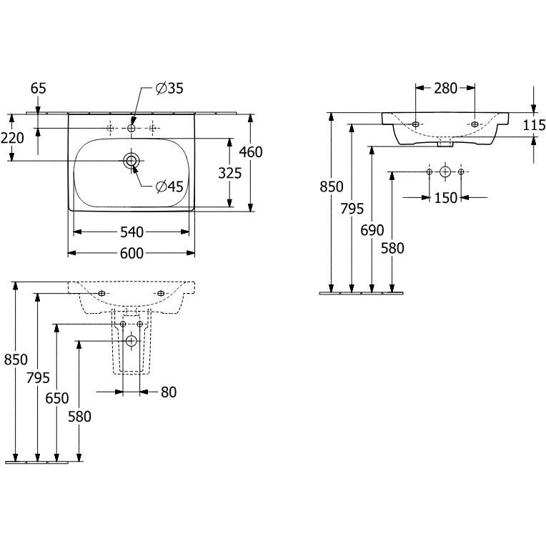 - Viduryje išmušta viena skylė maišytuvui (galima išmušti trys skyles maišytuvui)