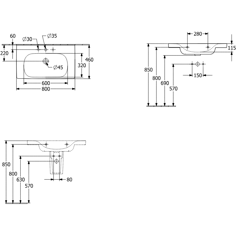 - Viduryje išmušta viena skylė maišytuvui (galima išmušti trys skyles maišytuvui)