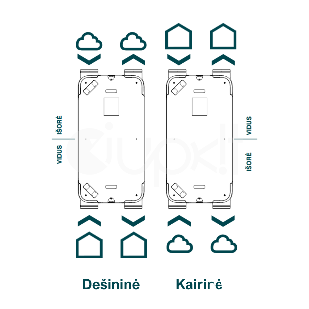 - Galimos versijos su standartiniu arba entalpiniu šilumokaičiu (drėgmės grąžinimo funkcija);
